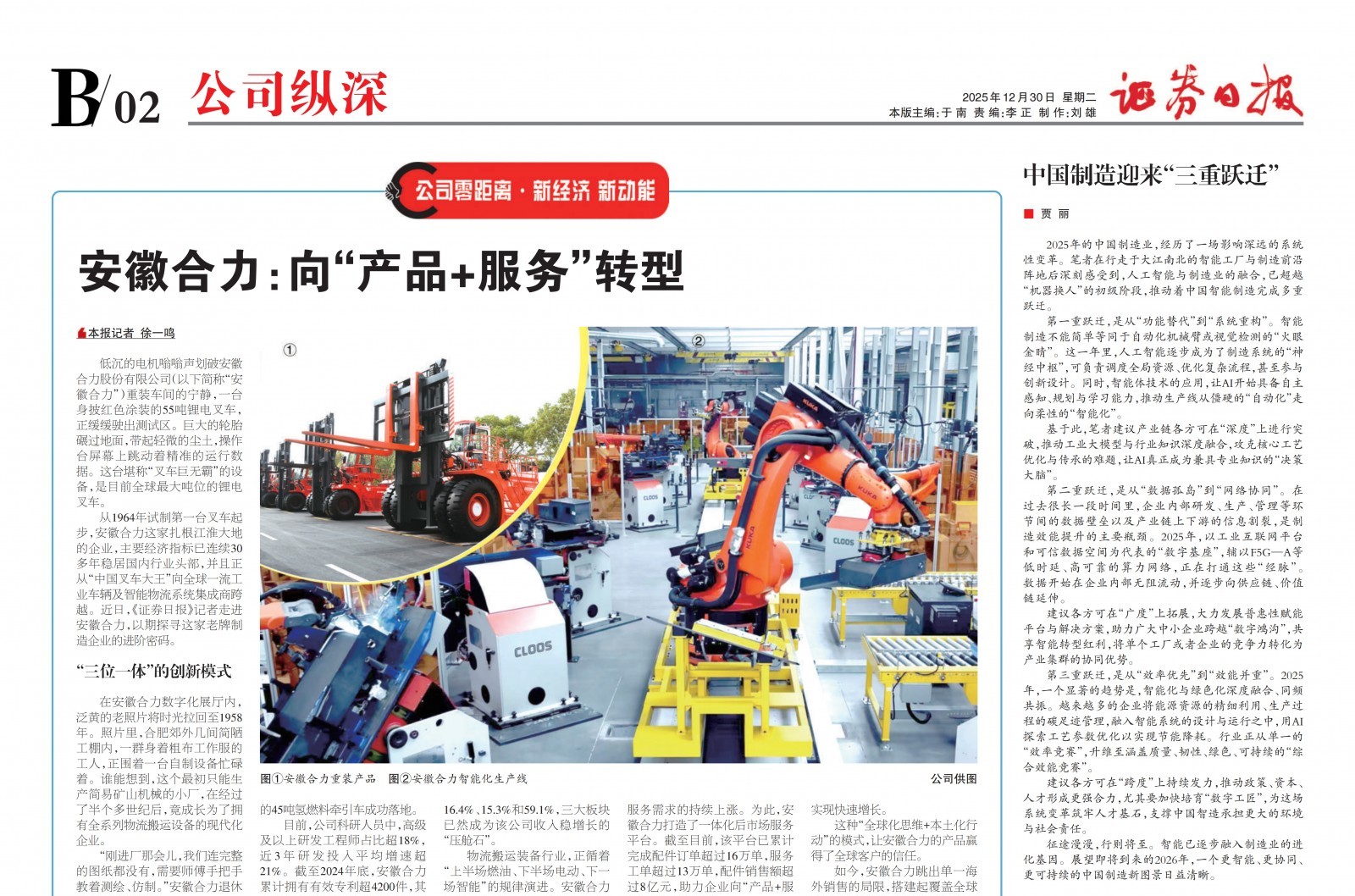 【證券日?qǐng)?bào)】安徽合力:向“產(chǎn)品+服務(wù)”轉(zhuǎn)型