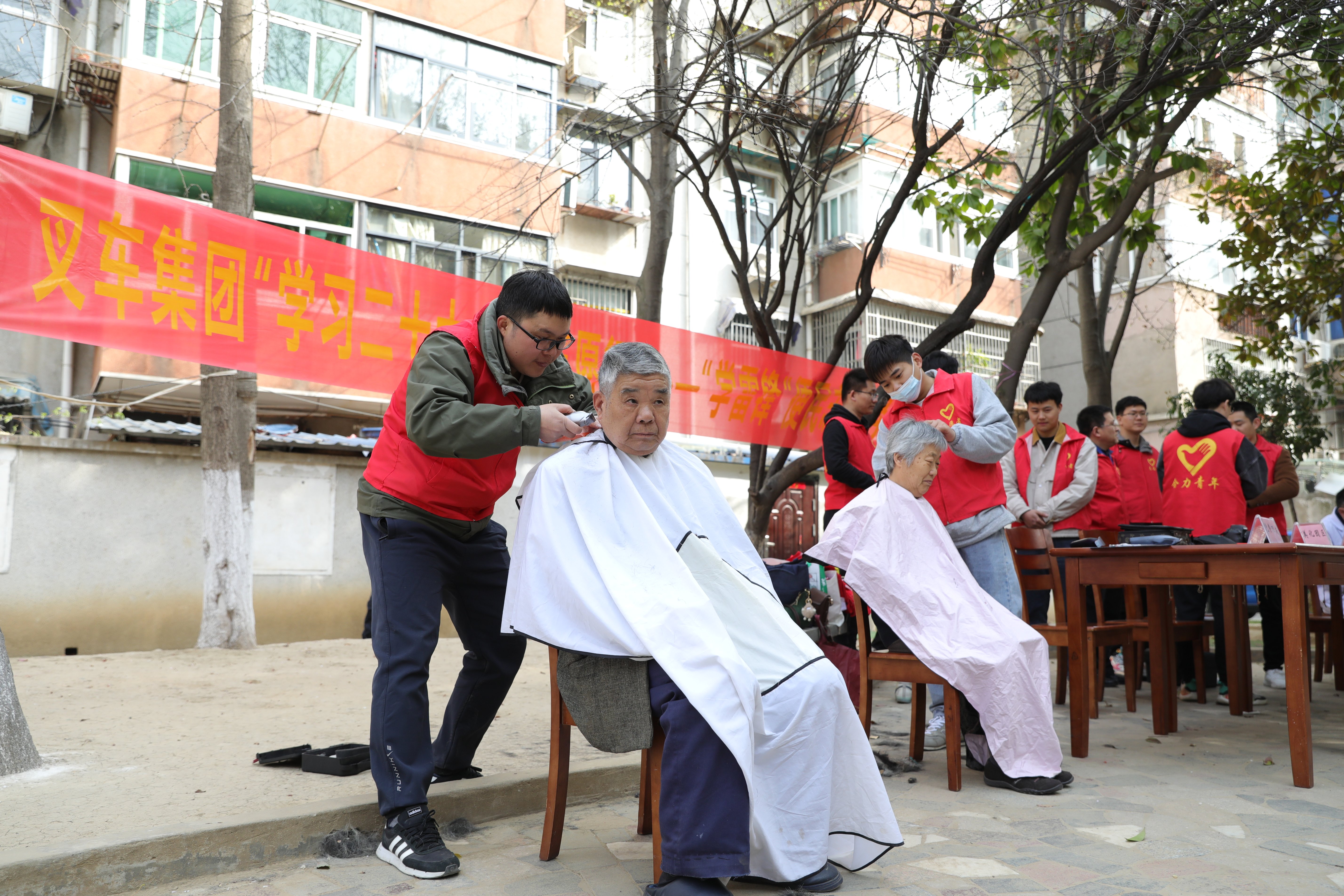 3月12日,合力家園一群身穿合力志愿者紅馬甲的年輕人特別惹人注目,他們或坐在一字?jǐn)[開(kāi)的服務(wù)咨詢臺(tái)前為居民量血壓,或耐心的為前來(lái)咨詢法律服務(wù)的居民答疑解惑,或嫻熟的揮動(dòng)手中的剃刀為居民免費(fèi)理發(fā),或主動(dòng)上門為居民維修電器,或穿梭在樓道街巷進(jìn)行義務(wù)清...